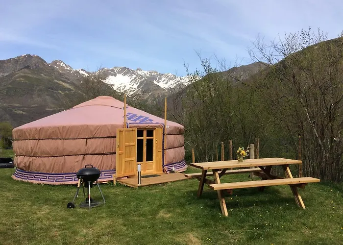 Yourtes Mongoles Gavarnie设有日光浴 和阳光露台,到Barrage des Gloriettes开车只需10分钟. 场地还设有1间卧室.小厨房配有炉子,厨具 和洗衣机.